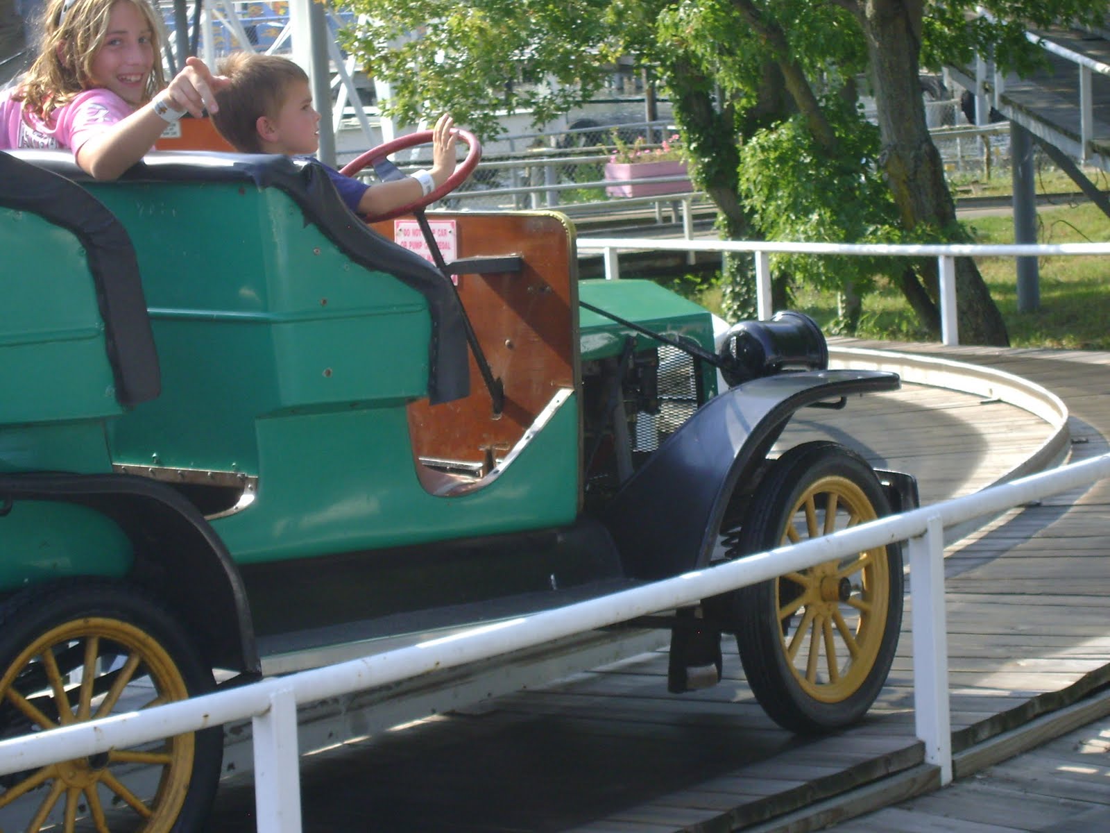 The summer is over, or at least the free time. School has been in full swing where I teach for 2 weeks (34 more). We have made probably our last trip to Indiana Beach for this season. This makes me sad. Devon and Austin tried NEW things yesterday. Austin went to the water park with the girls and Shane. Austin actually went down the water slide 3 times. He even went to the beach part. This made the girls happy as they love the water. Devon did things he has never done before. It was so cute when he saw the water park. He was off and running to it. He has become a fish finally. Austin tells us he has to get in the water when he sees it as his "gills" are drying out and he needs to be in the water. We finally got Devon to drive the old timey cars. On our last trip on the train, Devon told me he wanted to go ride the old timey cars and the subs. The subs weren't open so we could only do the cars. He wouldn't drive and Casi was mad at me because I didn't let him drive. He decides he wants to ride with Rachel. However he won't drive still. She has him hold onto the steering wheel. When he gets off he wants to ride again. You see along the way he saw a little kid driving, he stood up in the car to check him out. In he hops in the drivers seat. He is taking Rachel for a ride this time. Our day ended with Devon screaming he wasn't done with the riding. Next season Devon, next season.